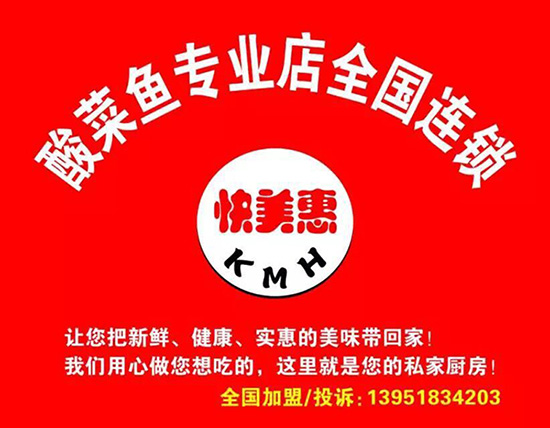 快美惠酸菜鱼专业店全国连锁,自开业以来一直以企业化运转经营,菜品和企业形象深的广大爱好者喜爱和信赖。由于用心经营,生意火爆,引起一些不诚信商家冒充模仿经营,欺骗广大消费者,甚至打着本品牌在各地招募加盟行骗,公司真诚希望您在消费、加盟时认准快美惠品牌,实地消费,实地考察,随时与公司联系,以防受骗。